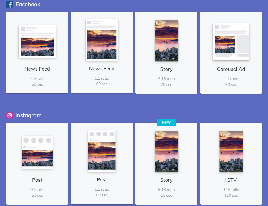 - Disponibiliza formatos para diversas redes sociais a sua escolha;
