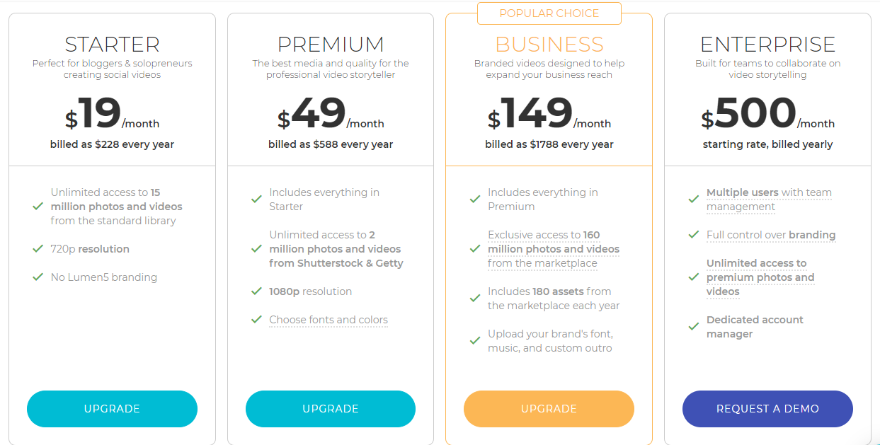 Gosto muito da interface e da experiência de utilização no geral, mas ressalto que, dependendo da necessidade de produção de vídeos, é interessante um plano premium pois no plano free a qualidade não é tão alta e é renderizado com uma animação divulgando o site Lumen5.com como se fosse uma marca d’água ao final do vídeo. A partir do plano pago Starter, o usuário pode exportar com resolução de 720p e remover as informações no final do vídeo.