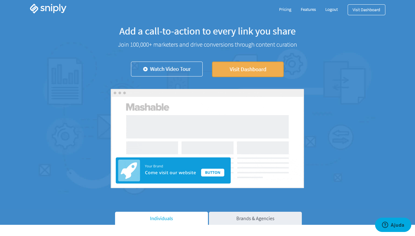O Sniply é uma ferramenta que permite sobrepor um CTA (Call to Action) com sua própria mensagem a qualquer parte de outros conteúdos.