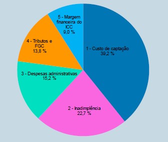 O custo de crédito oscilará de acordo com a forma de captação de cada banco. Sensível em maior ou menor grau em relação à dependência dos instrumentos de captação indexados à taxa Selic. Quanto maior o custo de captação maior o custo de crédito (taxas de juros).